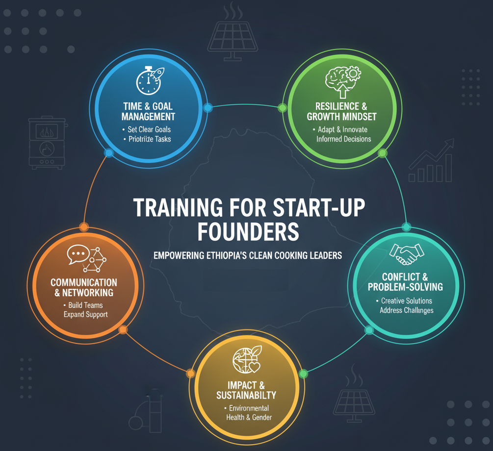 This course empowers you, a startup founder in Ethiopia’s clean cooking sector, with essential skills for sustainable business growth. You’ll learn to set clear goals, manage time effectively, and prioritize high-impact tasks. Build resilience, adopt a growth mindset, and make informed decisions under uncertainty. Develop communication, networking, and delegation skills to lead teams and expand your support system. Gain conflict resolution and problem-solving abilities to address challenges creatively. By the end, you’ll master strategies to create customer-centric, resilient businesses that address community needs while advancing environmental sustainability, health improvement, and gender empowerment. Through online self-learning, you’ll acquire practical tools to drive lasting impact in the clean cooking sector.